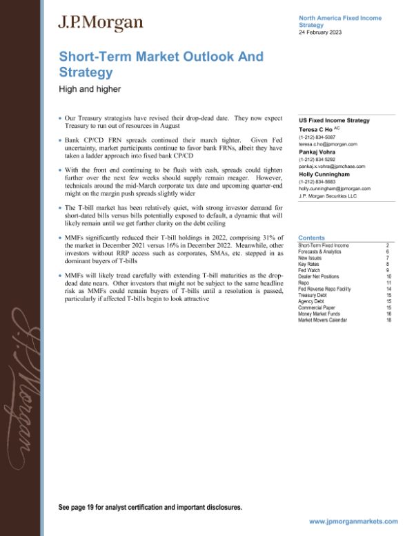 【J.P. Morgan】【20230224】JPMorgan Econ FI-Short-Term Market Outlook And Strategy High and higher-22页 行业研究