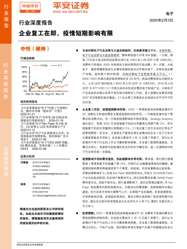 【平安证券】【20200203】电子行业深度报告:企业复工在即,疫情短期影响有限-18页 行业研究