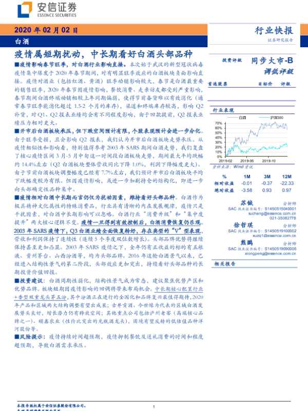 【安信证券】【20200202】白酒:疫情属短期扰动,中长期看好白酒头部品种-5页 行业研究