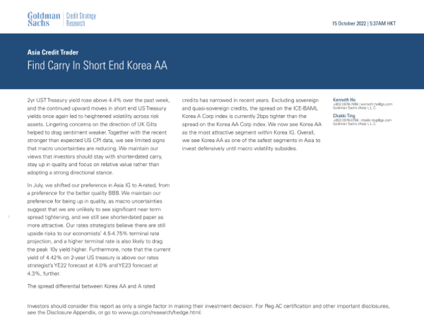 【Goldman Sachs】【20221015】Asia Credit Trader Find Carry In Short End Korea AA-34页 行业研究