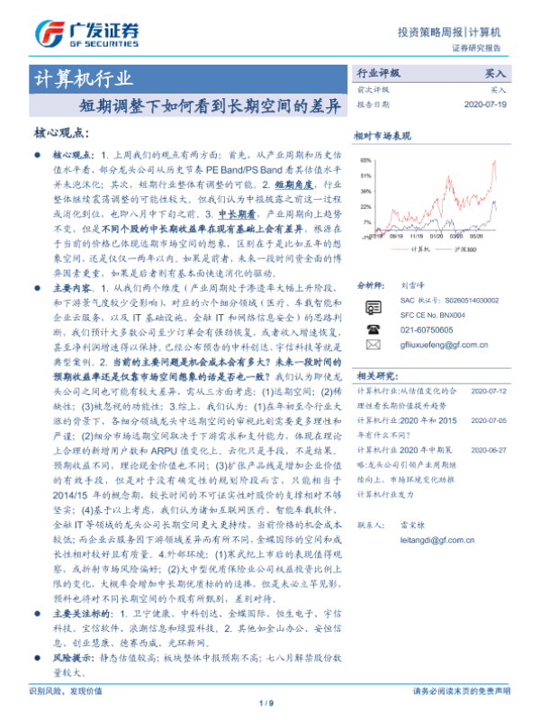 【广发证券】【20200719】20200719-广发证券-计算机行业投资策略周报:短期调整下如何看到长期空间的差异-9页 行业研究
