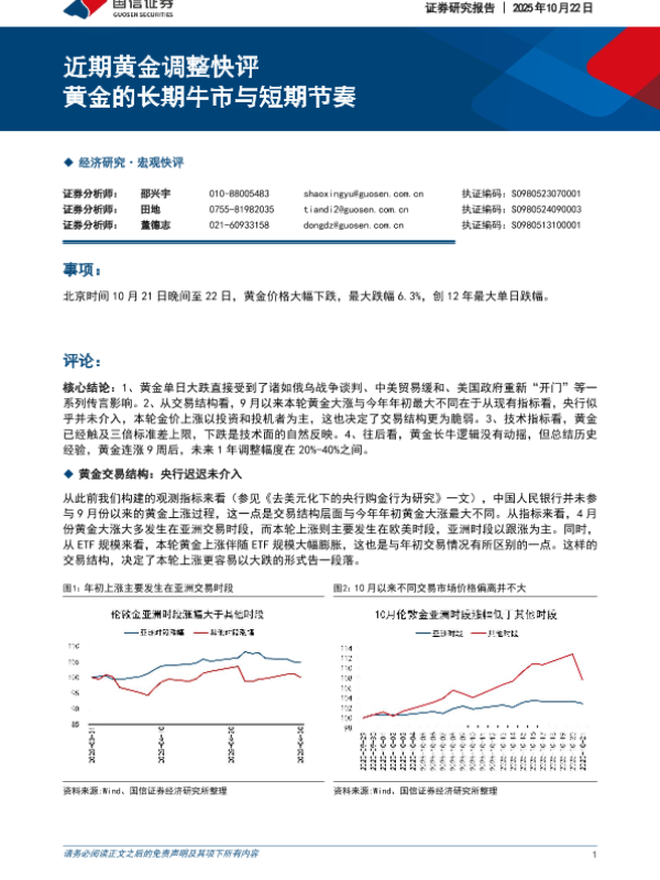 【国信证券】【202510】近期黄金调整快评:黄金的长期牛市与短期节奏-8页 证券期货研究报告