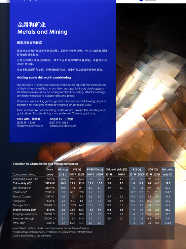 【建银国际】【20191016】金属和矿业:短期风险胃纳提高-4页 行业研究