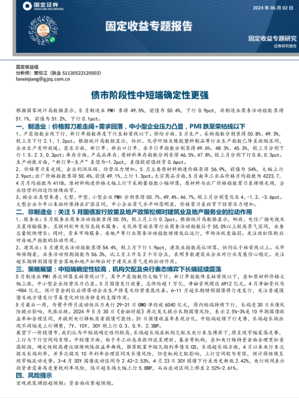 【国金证券】【20240602】固定收益专题报告:债市阶段性中短端确定性更强-14页 行业研究