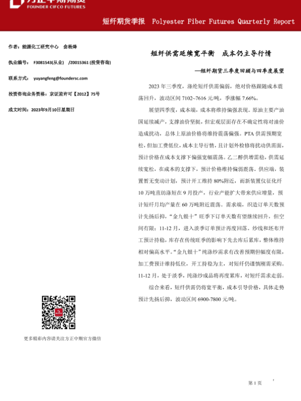 【方正中期期货】【20230910】短纤期货季报-20页 行业研究