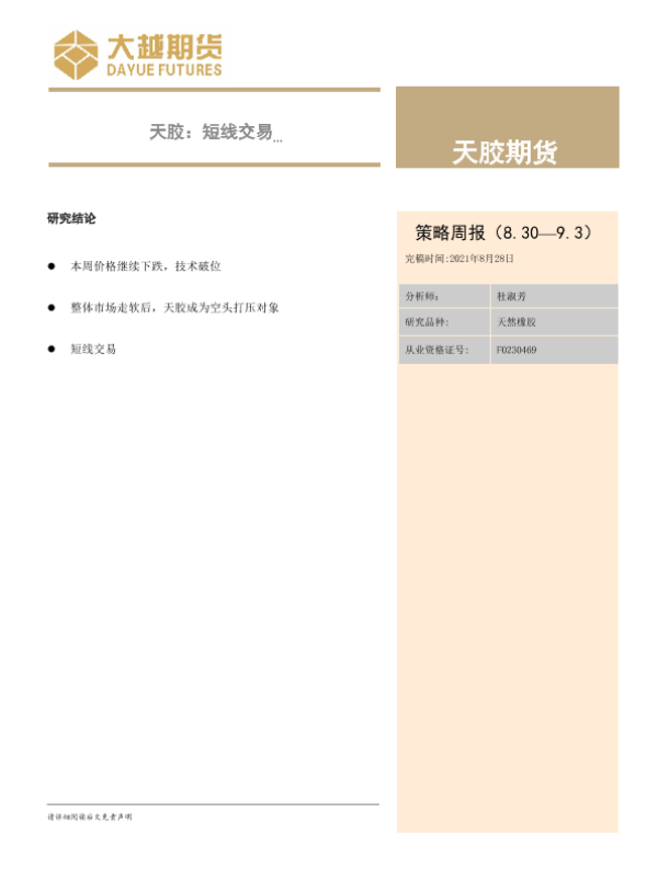 【大越期货】【20210828】天胶:短线交易天胶期货策略周报(8.30—9.3)-3页 行业研究