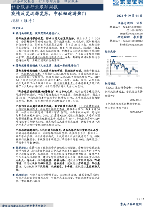 【东吴证券】【20220904】社会服务行业跟踪周报:疫情反复迟滞复苏,中秋短途游热门-15页 行业研究