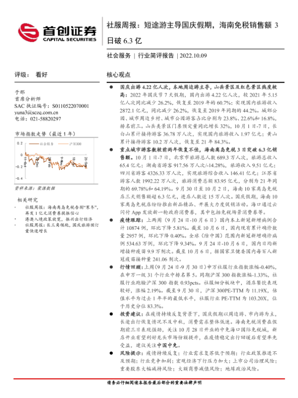 【首创证券】【20221009】社服周报:短途游主导国庆假期,海南免税销售额3日破6.3亿-12页 行业研究