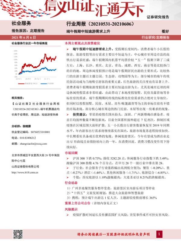 【山西证券】【20210606】社会服务行业周报:端午假期中短途游需求上升-9页 行业研究