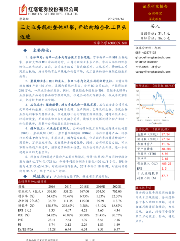 【红塔证券】【20190116】三大业务筑起整体框架,开始向综合化工巨头迈进-68页 行业研究