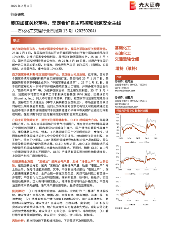 【光大证券】【20250204】石化化工交运行业日报第13期:美国加征关税落地,坚定看好自主可控和能源安全主线-11页 行业研究