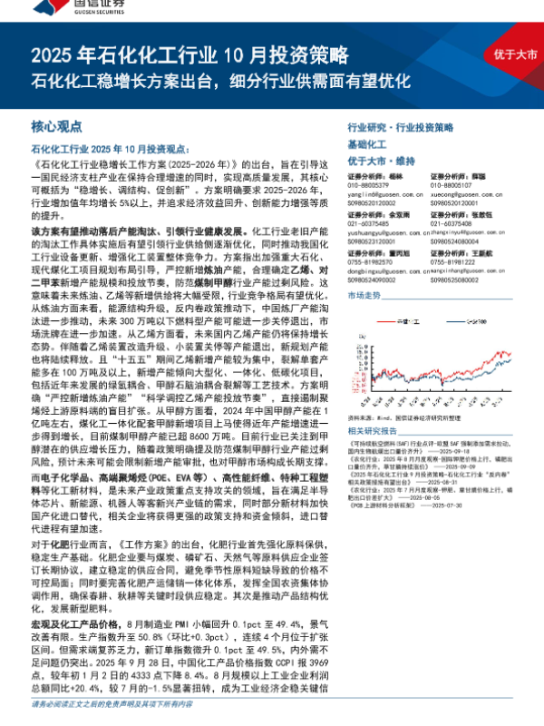 【国信证券】【202510】2025年石化化工行业10月投资策略:石化化工稳增长方案出台,细分行业供需面有望优化-31页 证券期货研究报告