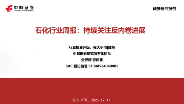 【中邮证券】【202512】石化行业周报:持续关注反内卷进展-16页 证券期货研究报告