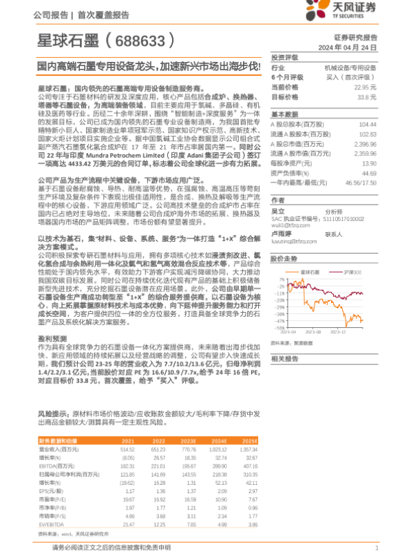 【天风证券】【20240424】星球石墨(688633)国内高端石墨专用设备龙头,加速新兴市场出海步伐!-32页 行业研究
