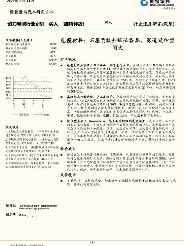 【国金证券】【20220814】动力电池行业:包覆材料,石墨负极升级必备品,赛道延伸空间大-15页 行业研究