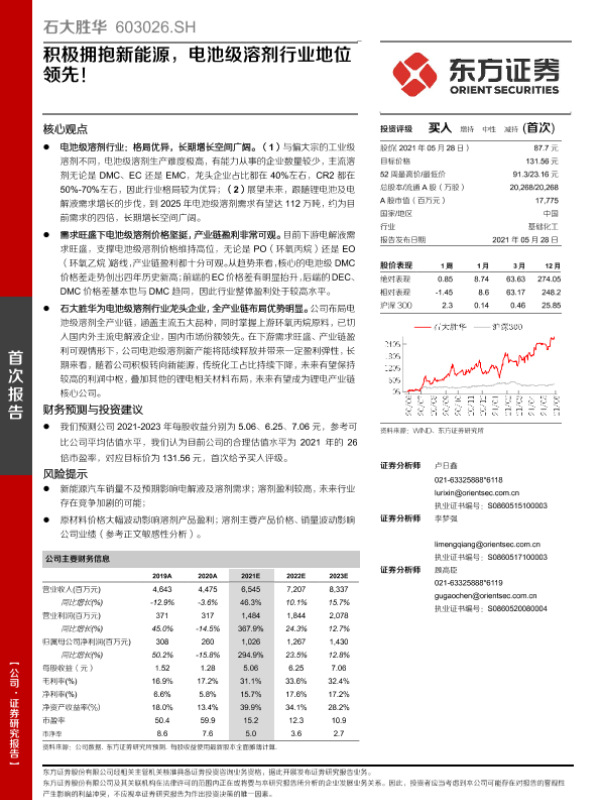 【东方证券】【20210528】积极拥抱新能源,电池级溶剂行业地位领先!-29页 行业研究