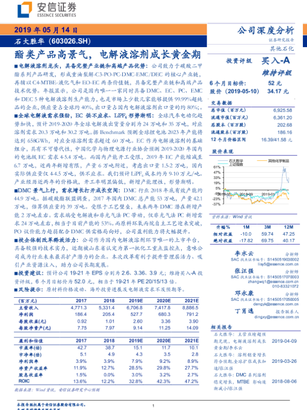 【安信证券】【20190514】酯类产品高景气,电解液溶剂成长黄金期-22页 行业研究