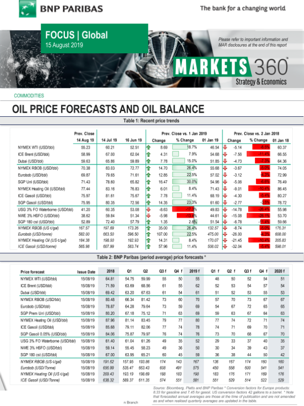 【BNP Paribas】【20190815】聚焦全球:石油价格预测和石油平衡-10页 行业研究