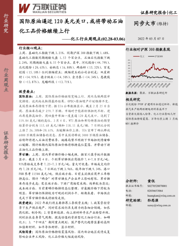 【万联证券】【20220214】20220214-万联证券-化工行业周观点:原油价格高位震荡,石油化工品跟涨-11页 行业研究