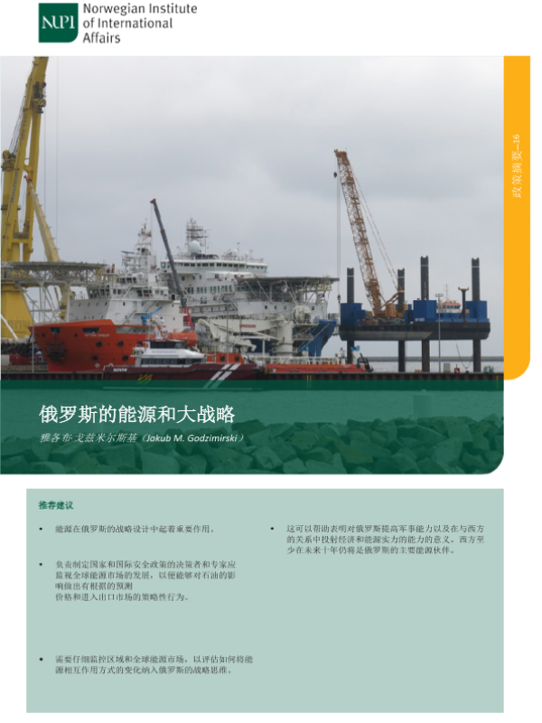 【挪威国际事务学院】【2020】俄罗斯的能源和大战略-4页 行业研究