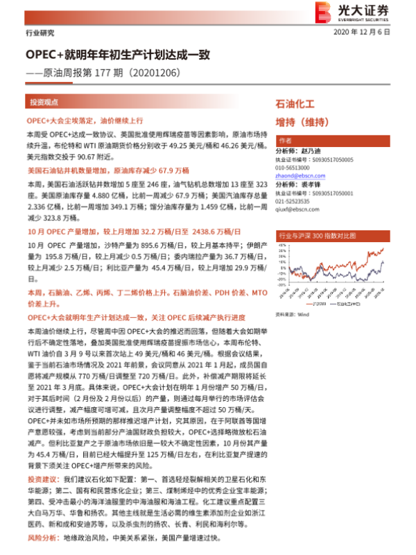 【光大证券】【20201206】OPEC+就明年年初生产计划达成一致-12页 行业研究