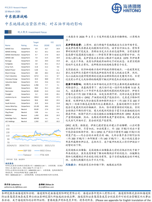 【海通国际】【202603】中东能源战略:中东地缘政治紧张升级:对石油市场的影响-13页 证券期货研究报告