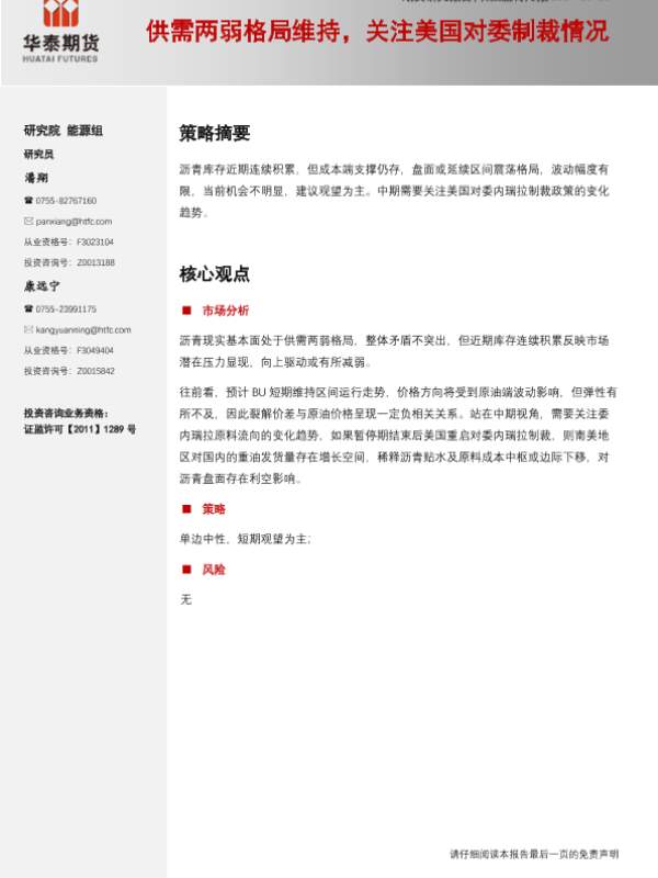 【华泰期货】【20240303】石油沥青月报:供需两弱格局维持,关注美国对委制裁情况-10页 行业研究