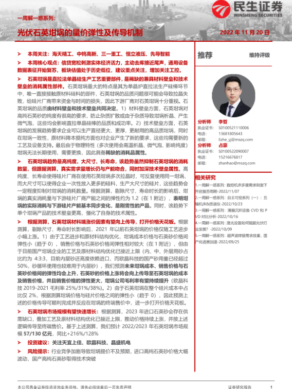 【民生证券】【20221120】机械行业一周解一惑系列:光伏石英坩埚的量价弹性及传导机制-17页 行业研究