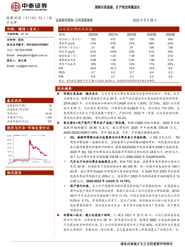 【中泰证券】【20220526】深耕石英晶振,扩产研发两翼成长-25页 行业研究