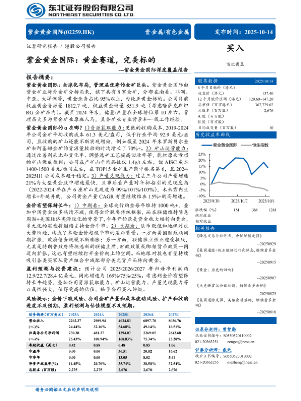 【东北证券】【202510】紫金黄金国际:黄金赛道,完美标的-30页 证券期货研究报告