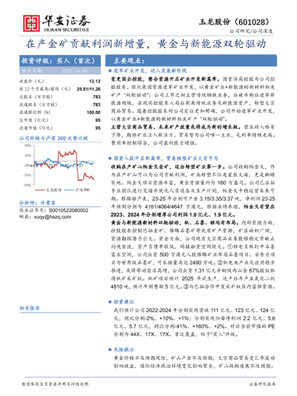 【华安证券】【20230404】在产金矿贡献利润新增量,黄金与新能源双轮驱动-24页 行业研究