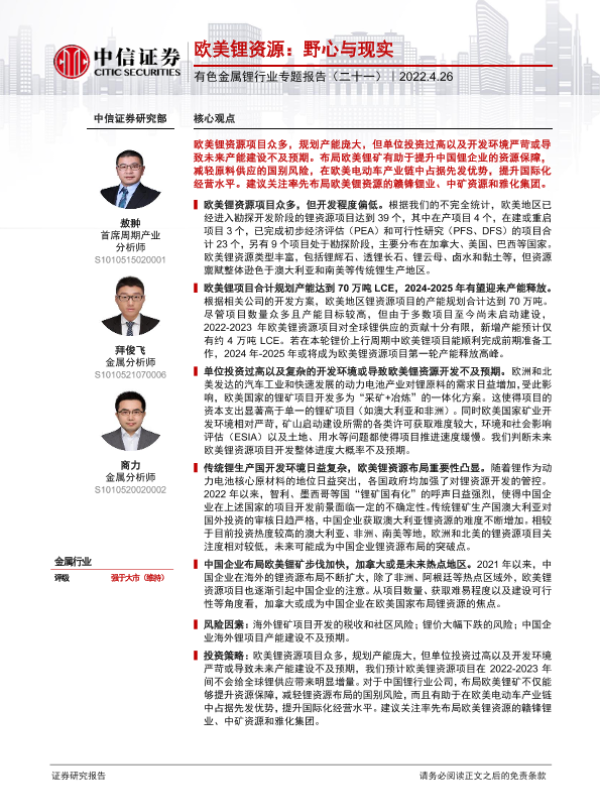 【中信证券】【20220426】欧美锂资源,野心与现实-74页 行业研究