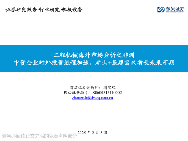 【东吴证券】【20250205】工程机械海外市场分析之非洲:中资企业对外投资进程加速,矿山+基建需求增长未来可期-31页 行业研究
