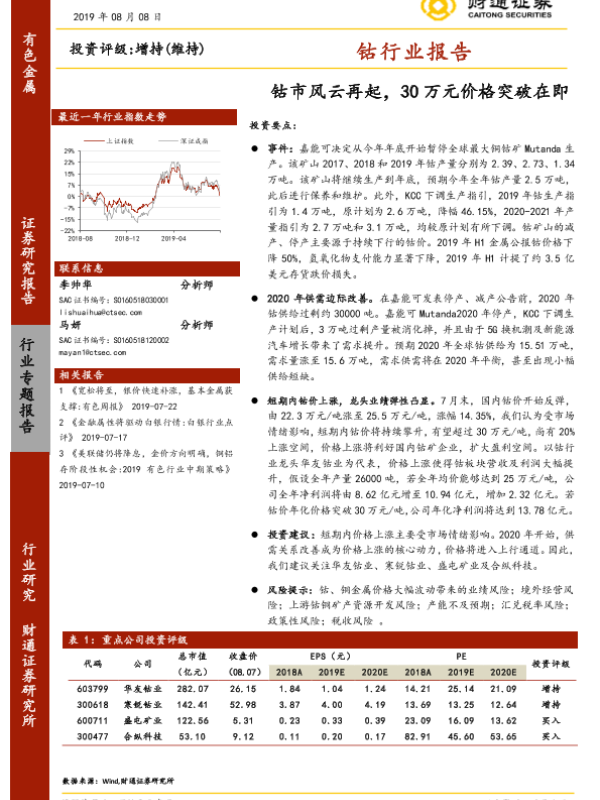 【财通证券】【20190808】钴市风云再起 30万元价格突破在即-9页 行业研究