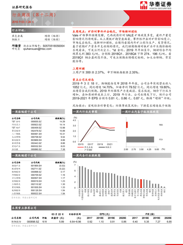 【华泰证券】【20190324】20190324-华泰证券-黑色金属行业周报(第十二周)-24页 行业研究