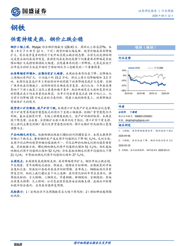 【国盛证券】【20200412】20200412-国盛证券-钢铁行业周报:供需持续走热,钢价止跌企稳-10页 行业研究