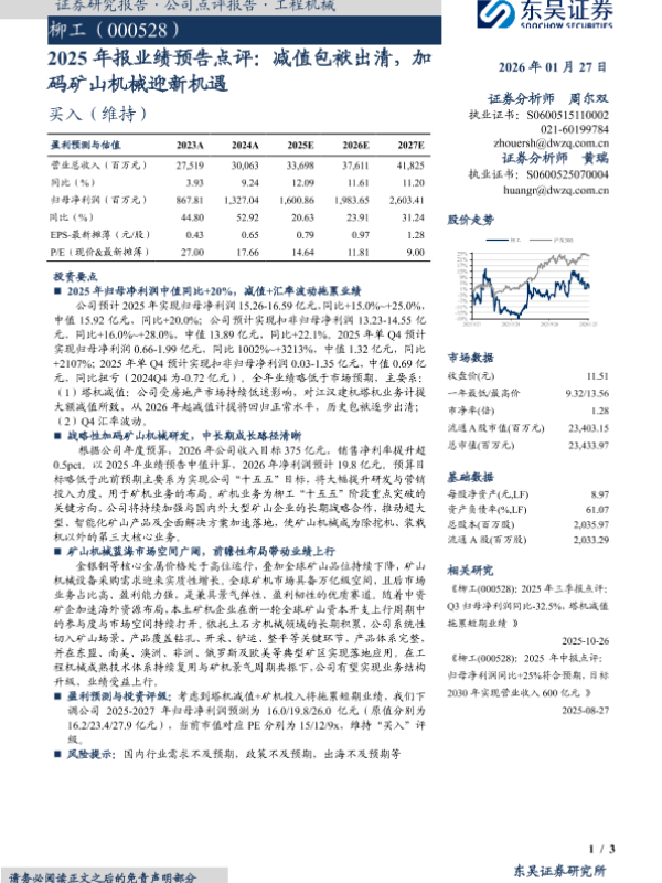 【东吴证券】【202601】2025年报业绩预告点评:减值包袱出清,加码矿山机械迎新机遇-3页 证券期货研究报告