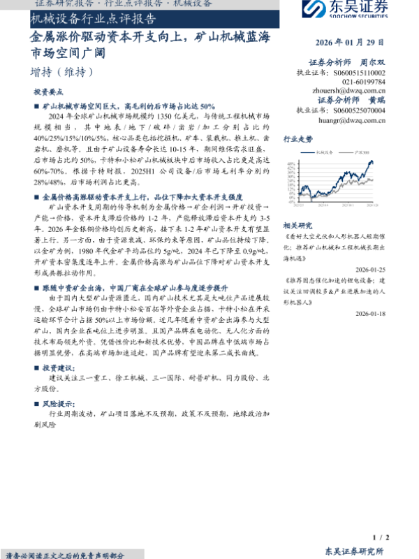 【东吴证券】【202601】金属涨价驱动资本开支向上,矿山机械蓝海市场空间广阔-2页 证券期货研究报告