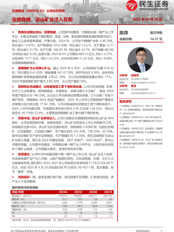 【民生证券】【202509】业绩稳健,凉山矿业注入在即-15页 证券期货研究报告