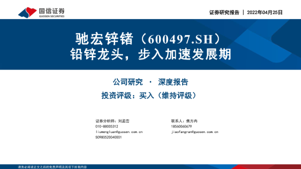 【国信证券】【20220425】驰宏锌锗(600497.SH) 铅锌龙头,步入加速发展期-46页 行业研究