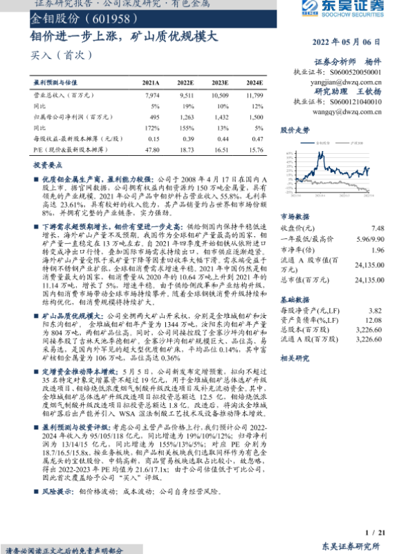 【东吴证券】【20220506】金钼股份:钼价进一步上涨,矿山质优规模大-21页 行业研究