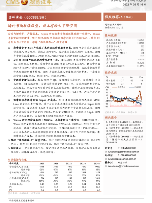 【海通证券】【20220516】赤峰黄金-600988.SH-海外布局持续放量,成本有较大下降空间-16页 公司研究
