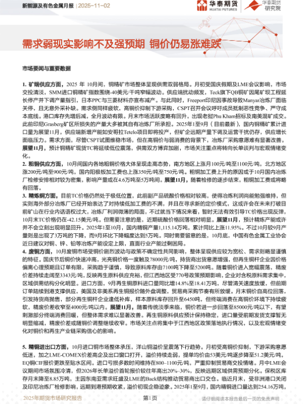 【华泰期货】【202511】新能源及有色金属月报_需求弱现实影响不及强预期_铜价仍易涨难跌-11页 证券期货研究报告