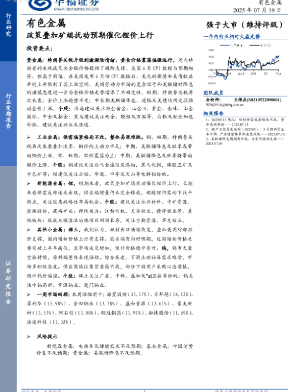 【华福证券】【20250719】有色金属行业:政策叠加矿端扰动预期催化锂价上行-15页 行业研究