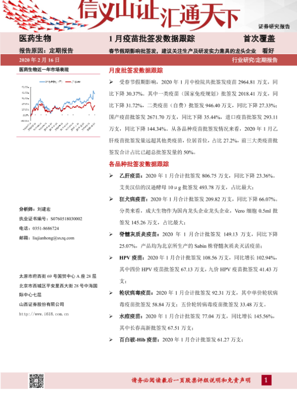 【山西证券】【20200216】1月疫苗批签发数据跟踪-25页 行业研究