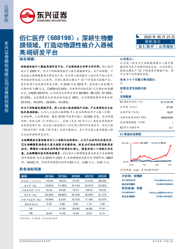 【东兴证券】【20200623】佰仁医疗:深耕生物瓣膜领域,打造动物源性植介入器械高端研发平台-26页 行业研究