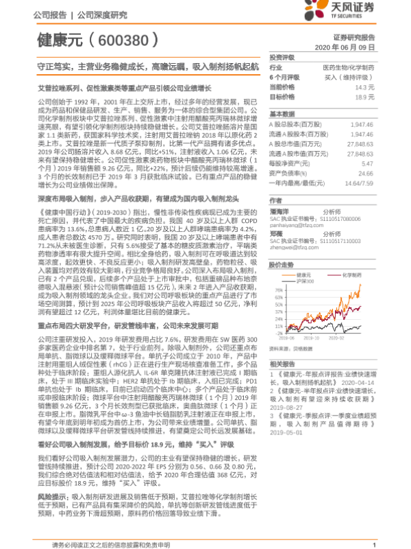 【天风证券】【20200609】守正笃实,主营业务稳健成长,高瞻远瞩,吸入制剂扬帆起航-49页 行业研究