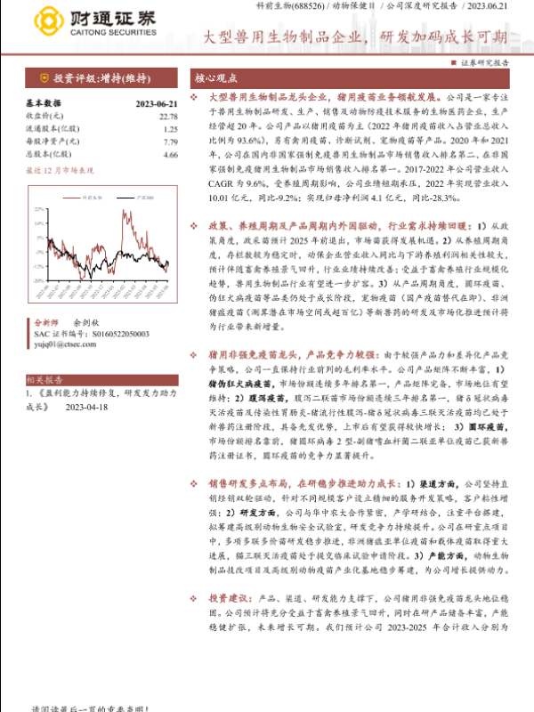 【财通证券】【20230621】科前生物(688526)大型兽用生物制品企业,研发加码成长可期-34页 行业研究