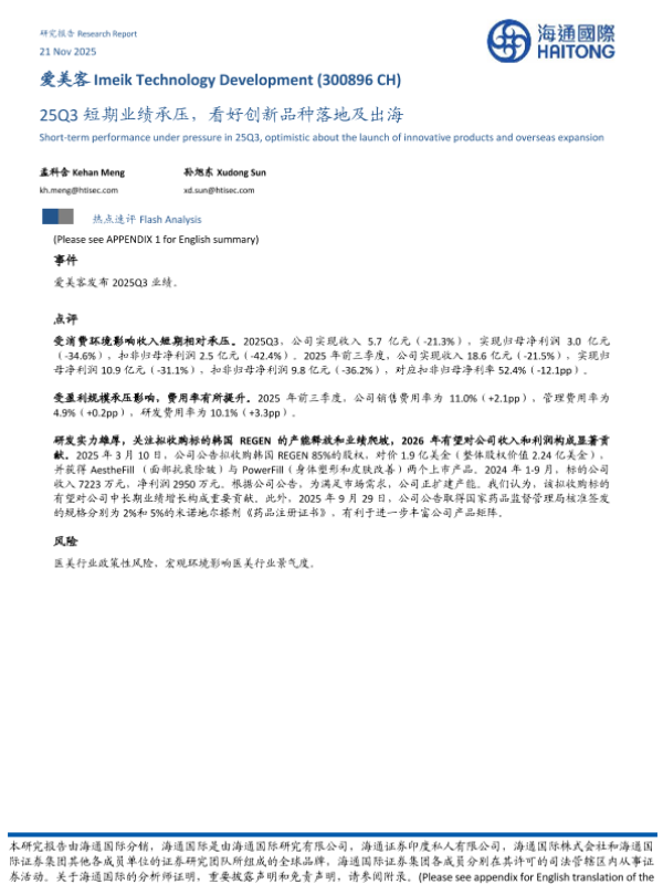 【海通国际】【202511】25Q3短期业绩承压,看好创新品种落地及出海-9页 证券期货研究报告