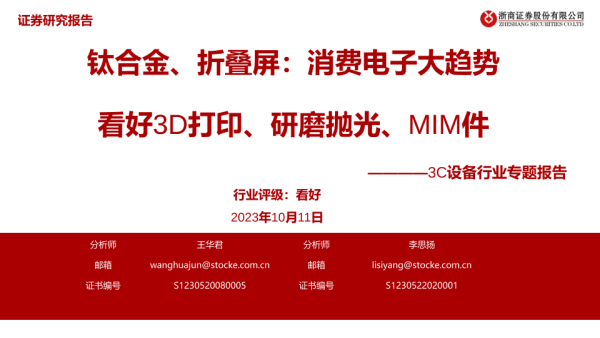 【浙商证券】【20231011】3C设备行业专题报告:钛合金、折叠屏,消费电子大趋势看好3D打印、研磨抛光、MIM件-29页 行业研究